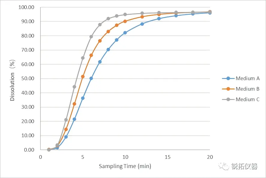 ①-01 Selection of Medium and Flow Rate: In this study, we evaluated the effect of varying surfactant concentrations (Medium A < Medium B < Medium C) on the release extent of the formulation within the same pH buffered system. Test results demonstrated that the release rate of the immediate-release components markedly accelerated as the surfactant concentration in the dissolution medium increased.
