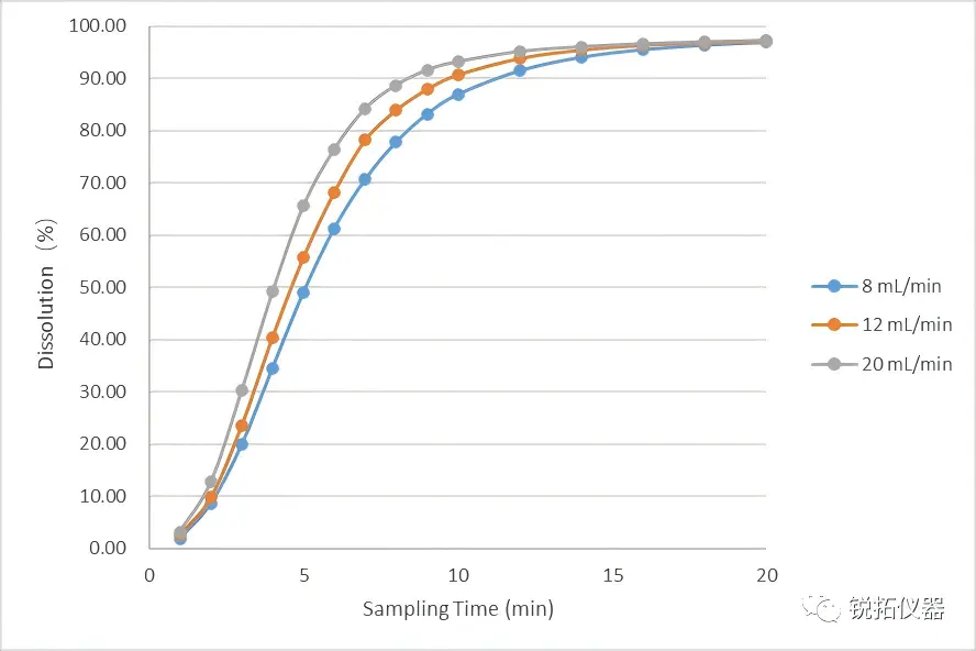 ①-02 Subsequently, we evaluated the effect of varying flow rates on sample release under identical dissolution medium conditions. Test results demonstrated that higher flow rates within the dissolution medium accelerated the release rate of the immediate-release components.